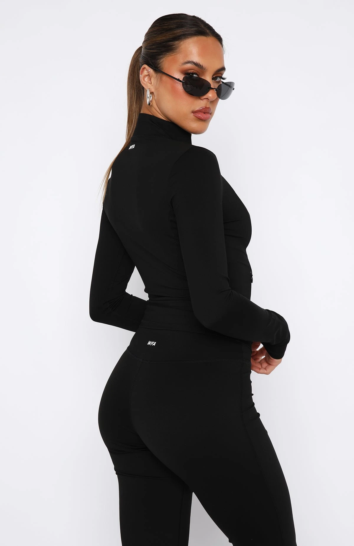 Meet your match. Give your gym edit an upgrade with the Bay Run Jacket Black! Features a high neck collared design, hidden centre front zipper, front pockets, tailored for a snug fit and full length. Pair with the Go Getter High Waisted Leggings Black for a snatched look!