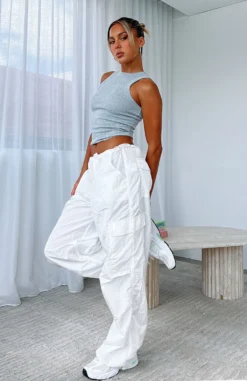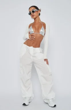 Parachute pants are our current obsession and we are living in the Be The Moment Cargo Pants in White. Featuring a parachute pant design and a wide leg fit, button closure, side and cuff drawstring with toggle, back and side pocket design and lightweight fabric. Pair these parachute pants with a long sleeve top and sneakers for a super chic look.Â