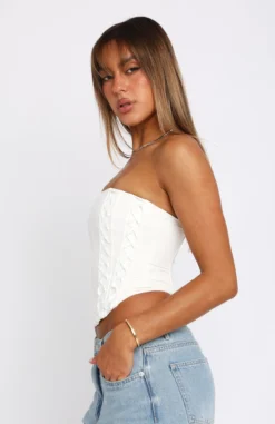 Add some spice to your look with the Born Blessed Bustier in White. This strapless bustier features boning in bodice, zipper centre back, lace-up front design and lined fabric. Pair with a cute mini skirt and a leather jacket for a chic fit!
