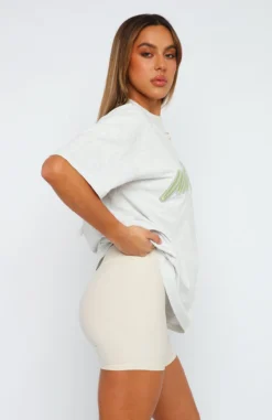 Not just a boyfriend tee. The Catch You Out Oversized Tee in Grey Marle is made for you! It is an oversized fit with slouch shoulders, round neckline and glitter thread embroidered logo centre front. Complete the look with bike shorts and sneakers for the perfect off-duty look!