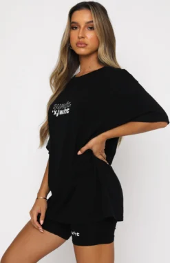 We’re obsessed with the Catching Feelings Tee in Black for a chilled out vibe. This t-shirt is oversized with a round neckline and slouch shoulders with a printed centre graphic. Wear as a matching set with the Real Games Bike Shorts or dress it up with jeans & boots.