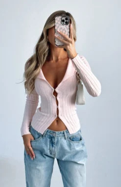 The long sleeve makes it perfect for mid-season dressing or layering. The Changes Long Sleeve Knit Top Baby Pink features a soft knit fabric, collared neckline, front clasp closure, unlined and textured fabric. Wear with White Fox jeans for a relaxed weekend look or style it up with a maxi skirt and perspex heels.