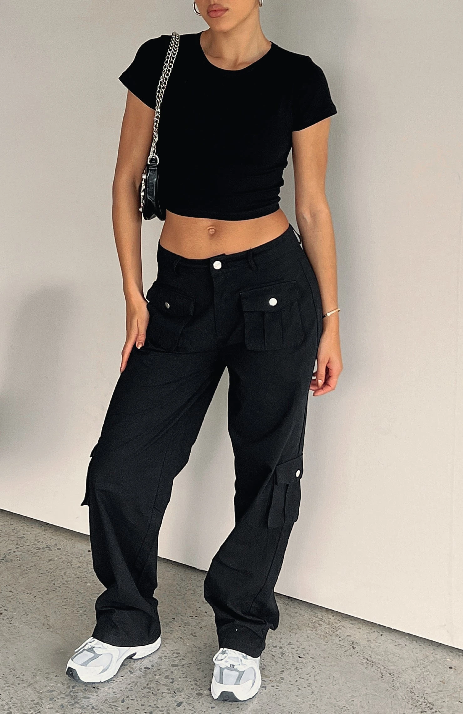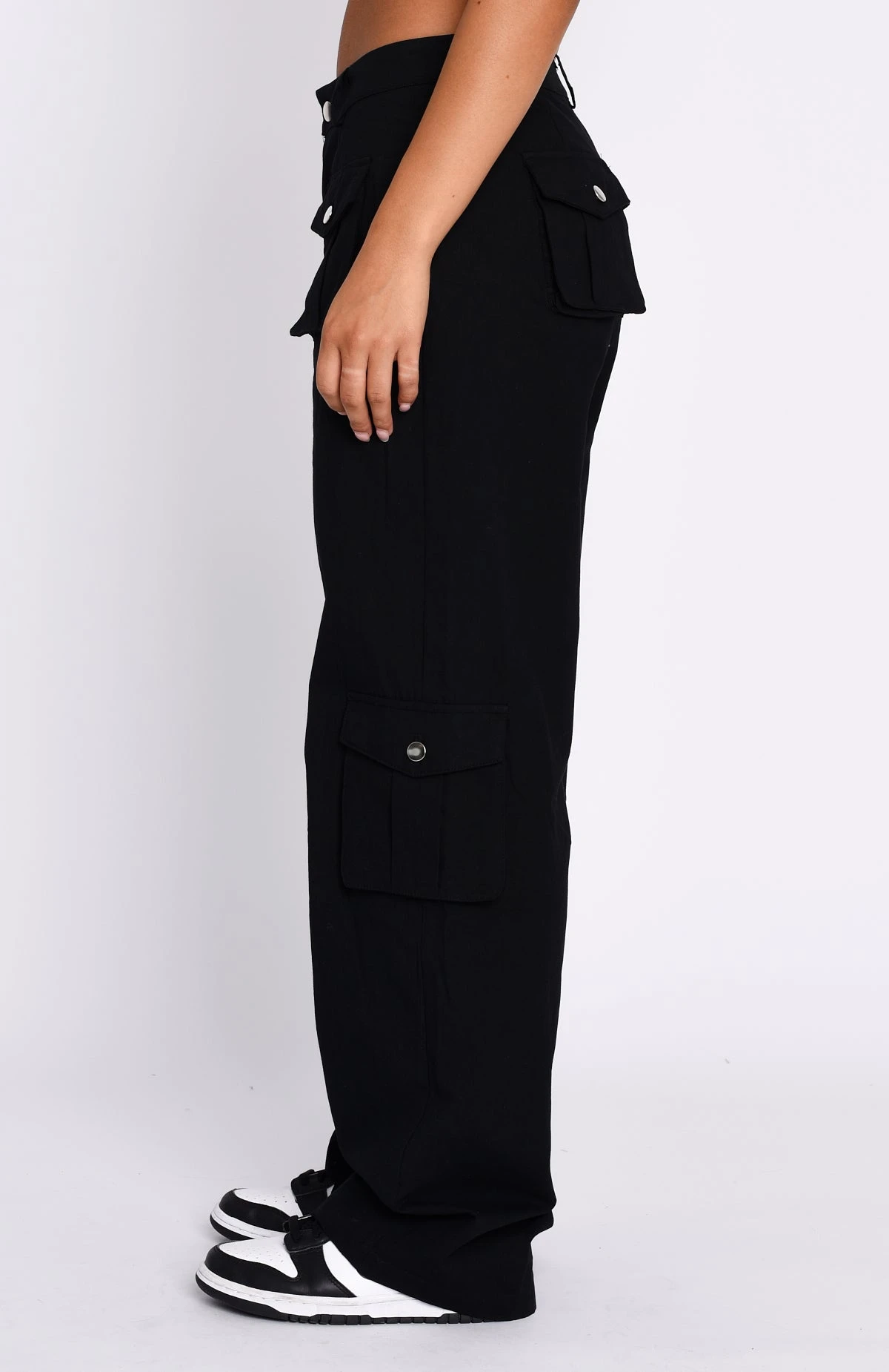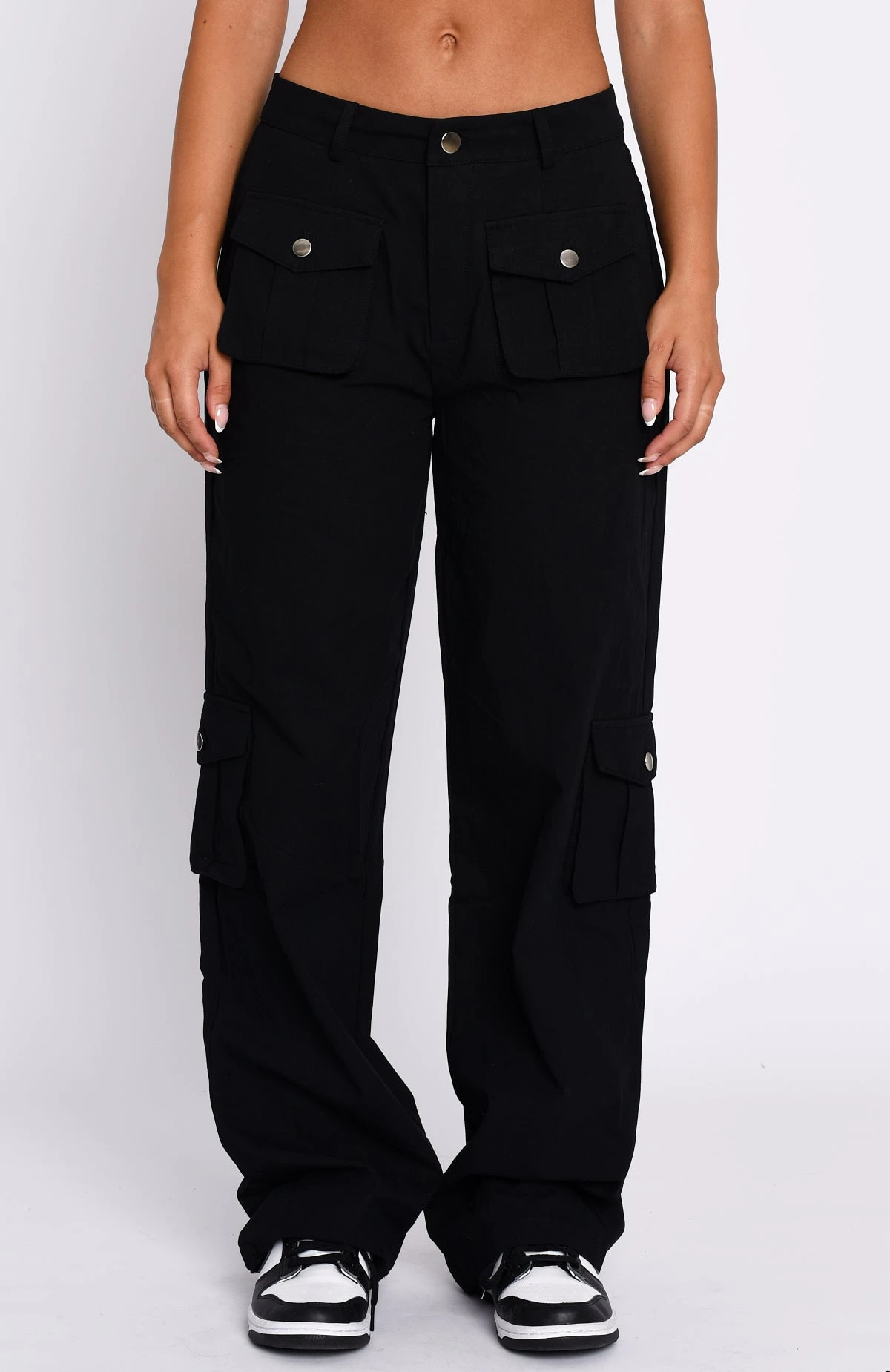 Channel everyday street style in the Clear My Mind Cargo Pants in Black. Featuring a cargo design and a straight leg fit, belt loops, button/zip closure and front and back pockets. Complete the look with a cute crop and sneakers for a look we love!