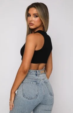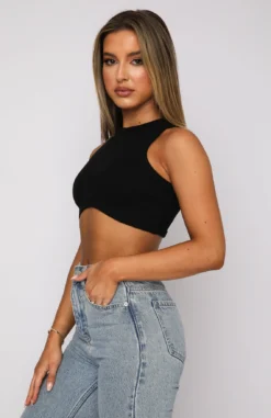 The Commit To Me Crop in Black is a summer staple in every babe’s wardrobe. This top is a racer back style with scooped neckline, thick straps, soft stretch fabric and cropped length. Pair with denim shorts and sandals and you are ready for a summer’s day beach walk.