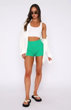 These Cut It Out Booty Shorts in Green are an essential in your wardrobe! These shorts are high waisted with a elasticated, wide waistband and ribbed, stretch fabric. To complete the look pair with an oversized shirt and sneakers for an effortlessly cool girl fit!