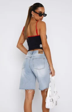 Introducing our latest denim creation – the Don’t Trust Me Denim Shorts Vintage Mid Blue Inspired by the Y2K fashion era, this trendy piece is designed to be your new crush.