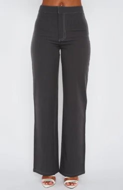 Add these Don’t Waste My Time Pants in Charcoal to your weekend collection. These pants are high-waisted and feature zipper and clasp closure, straight leg design and contrast stitching detail. Pair with the matching Hours In Silence Crop and perspex heels for a dreamy combo.