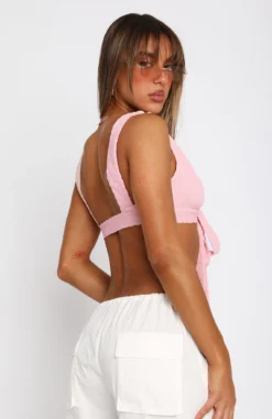 The Falling Into You Tie Front Crop in Baby Pink is giving us major jeans and a cute top vibes! Featuring thick straps, plunge neckline, front-tie design and lined fabric. We love this paired with your favourite pair of White Fox Denim Jeans and heels for a dreamy look!