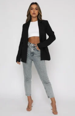 The Fashion Force Blazer Black is sure to give your look an androgynous feel. This blazer has an oversized, loose fit with button fastening front, faux front pockets. Pair with an oversized t-shirt and leather for a chic stylish look.