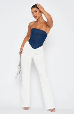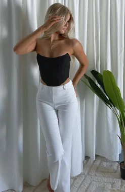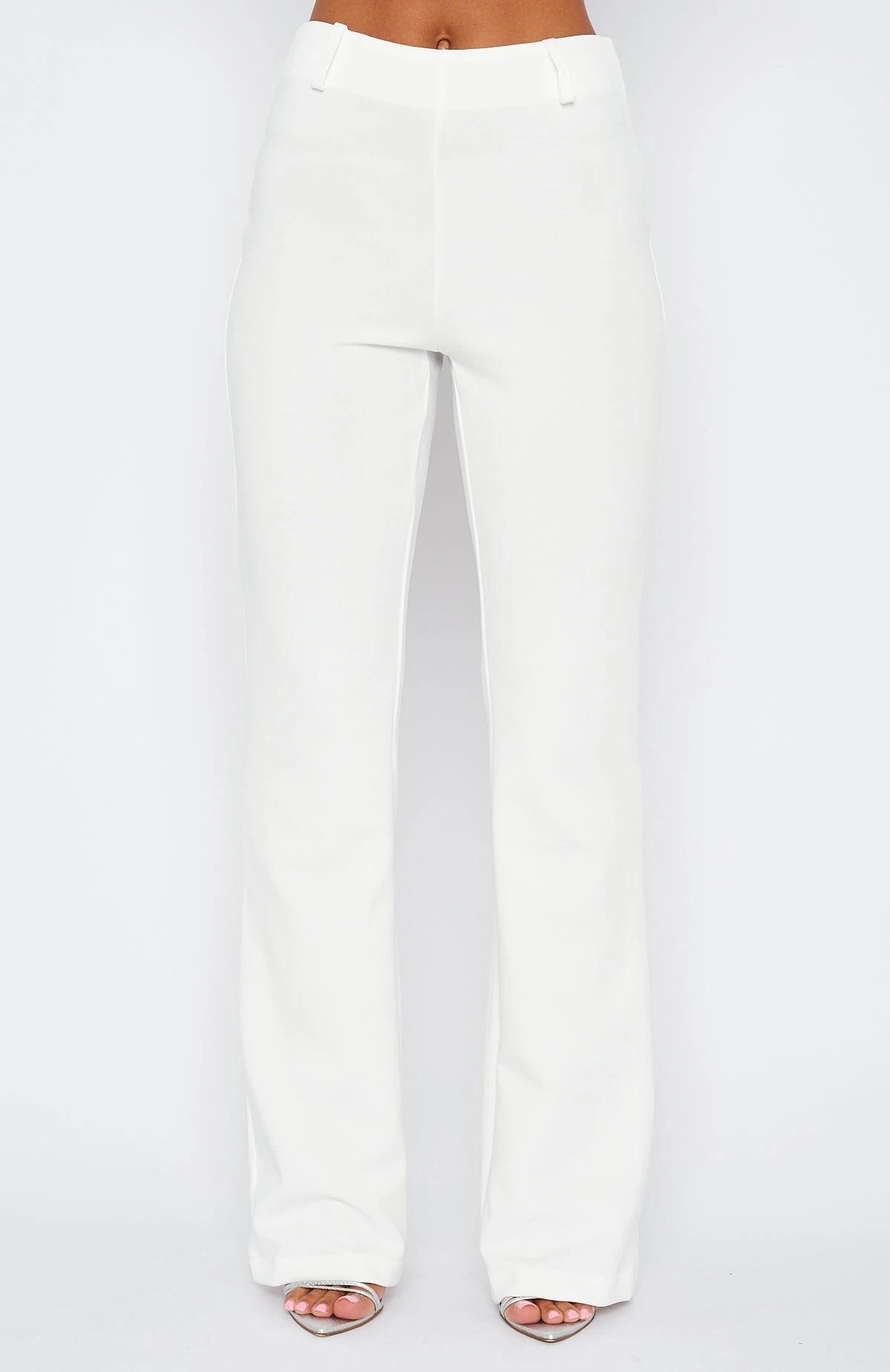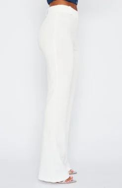 Add the Fearless Pants in White to your new season wardrobe. These trousers have a high waist with belt loops, invisible zipper centre back, flare leg and thick fabric. Complete the matching set with our In Charge Crop for a killer look.