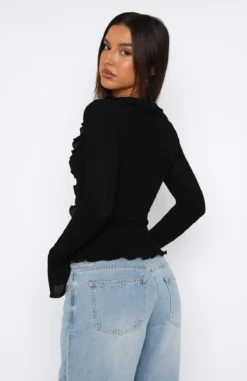 Make weekend styling simple with the Feel My Love Long Sleeve Top in Black. Featuring long sleeves, low neckline, front button closure and frill front detail. We love this paired with your favourite pair of White Fox Denim Jeans and gold accessories for a look we love!