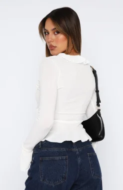 Make weekend styling simple with the Feel My Love Long Sleeve Top in White. Featuring long sleeves, low neckline, front button closure and frill front detail. We love this paired with your favourite pair of White Fox Denim Jeans and gold accessories for a look we love!Â