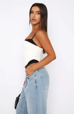 The Feel The Spark Bustier in White is absolutely trending and girl you need it! Featuring thin, adjustable straps, zipper centre fabric and lined fabric. Complete the look with your favourite pair of White Fox Denim Jeans and platform slides for a look we love!