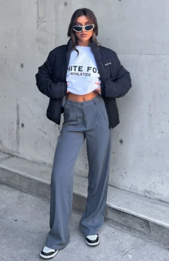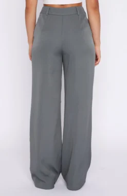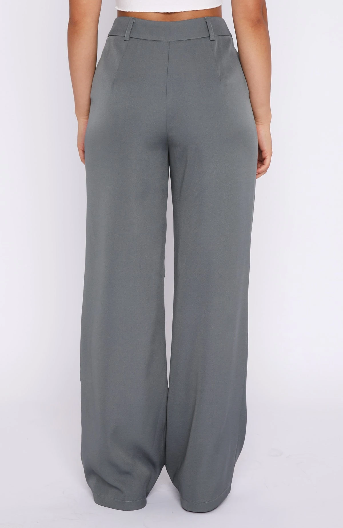 The First Glimpse Pants in Grey are a wardrobe staple. These tailored trousers are high waisted with zipper and button closure centre front, belt loops, side pockets and wide legs. Complete the look with a long sleeve top and clear mules for a sophisticated look!