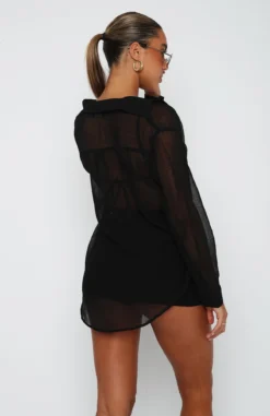 The Forget About Me Long Sleeve Shirt in Black is the wardrobe staple you’ve been waiting for! Featuring a light weight, sheer fabric, collared neckline, button front and cuff closure and relaxed fit. We love this paired with over a bikini for the perfect poolside look!