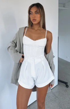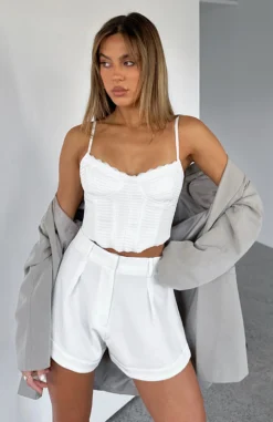 Make the Hey Vacay Shorts in White a staple in your wardrobe. This tailored short features a high waist fit, belt loops, centre zip and metallic closure. Team these with some knee-high boots for a look we’re loving.
