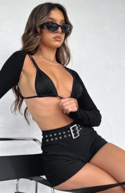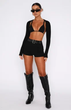 Show up and show off in the In Focus Mini Shorts in Black. This mini shorts feature a high, elasticated waistband and features a thick detachable belt with silver clasp and mini length. We love this paired with a bikini top and knee-high boots for the perfect festival look!