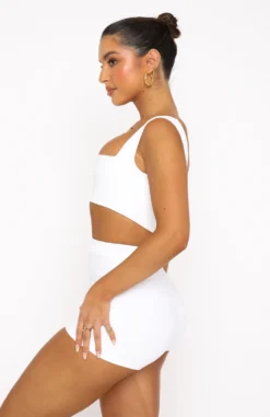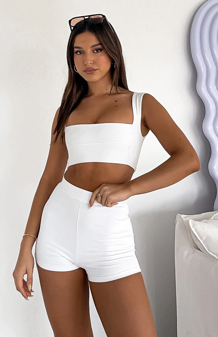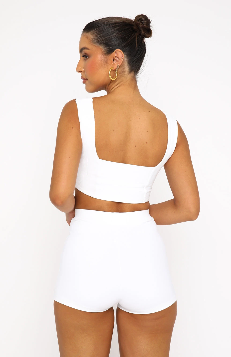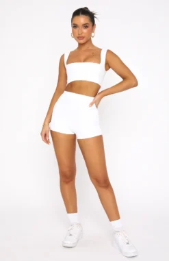 You’ll be feeling your best in the In The Mix Crop in White. Featuring thick straps, straight neckline and lined ribbed, stretch fabric. Pair with booty shorts and sneakers and you are ready for a hot girl walk.