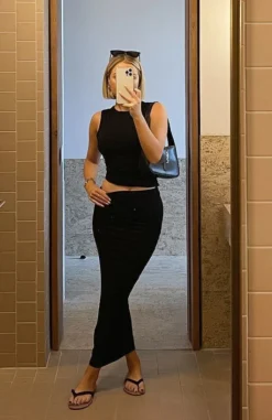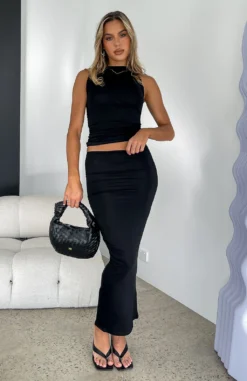 You’ll be looking dreamy in the Invites Only Maxi Skirt in Black. This maxi skirt features ruched side detail and soft, stretch fabric. We love this styled with the matching End Of The Night Tank and strappy heels for a look we love!