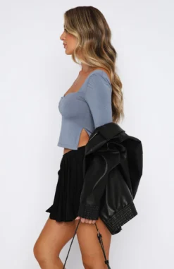 Your wardrobe is calling out for the It’s Not You Long Sleeve Top Steel. Featuring long sleeve fit, low neckline and cut-out side detail. We love this top paired with low rise jeans and heels for a super chic look.