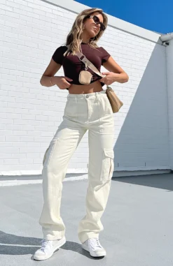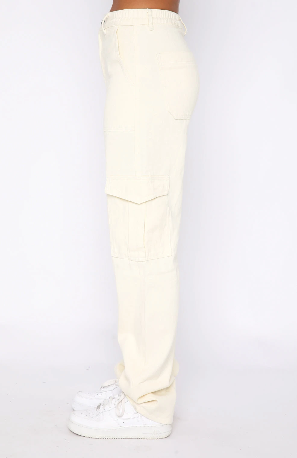 The coolest new fit the Keep On Moving Jeans in Cream. They are a mid rise relaxed fit with contrast stitching, 5 belt loops and side & back pockets. Style yours with sneakers and a crop.