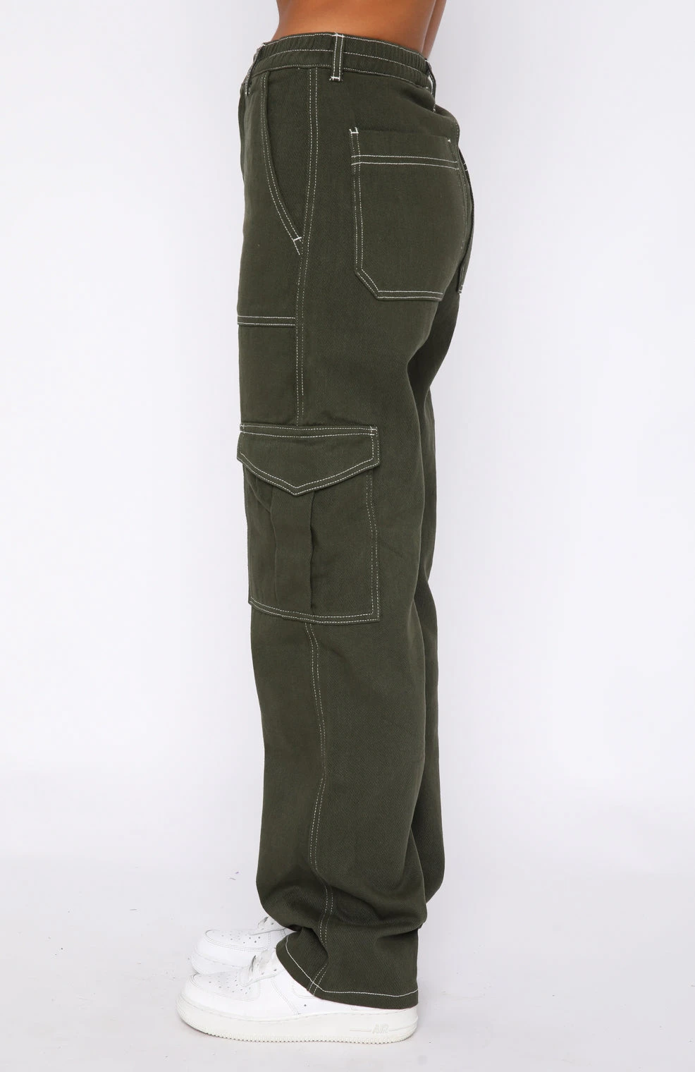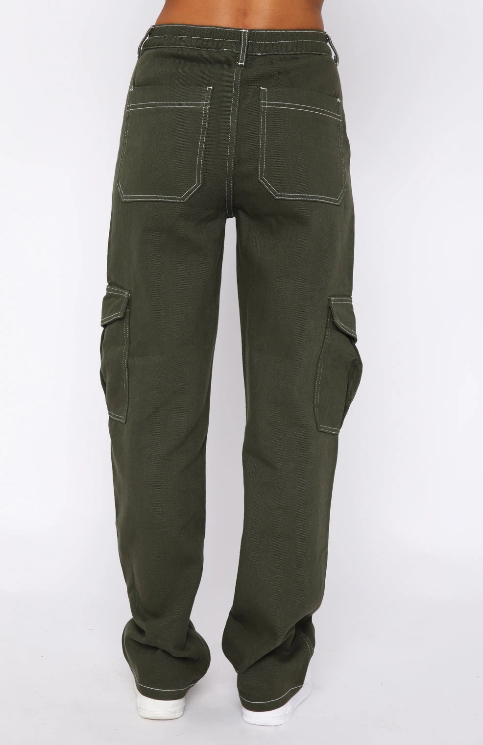 The coolest new fit the Keep On Moving Jeans in Khaki. They are a mid rise relaxed fit with contrast stitching, 5 belt loops and side & back pockets. Style yours with sneakers and a crop.
