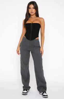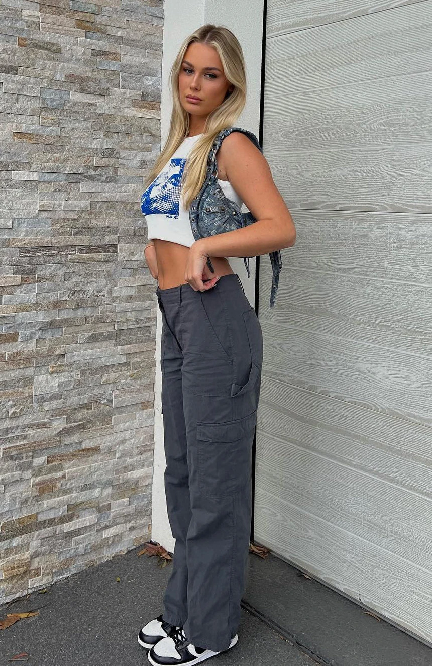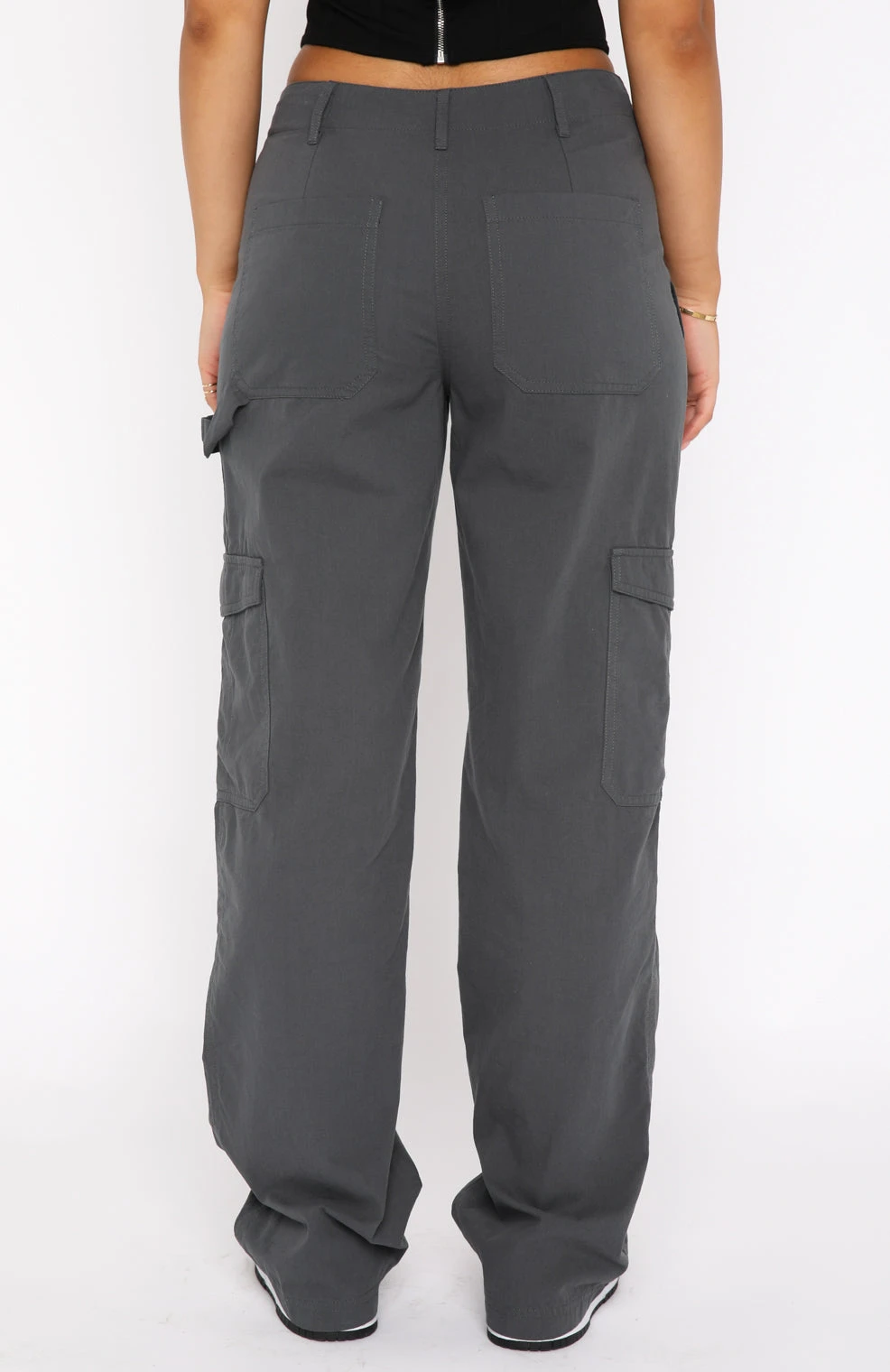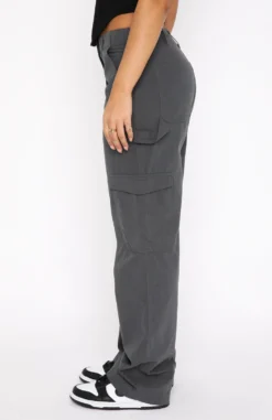 Upgrade your go-to everyday outfit with the Know Your Worth Cargo Pants in Charcoal. Featuring a cargo design and a wide leg fit, belt loops, button/zip closure and side pocket design on legs. Complete the look with a bustier and sneakers for a super cute look.