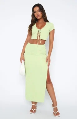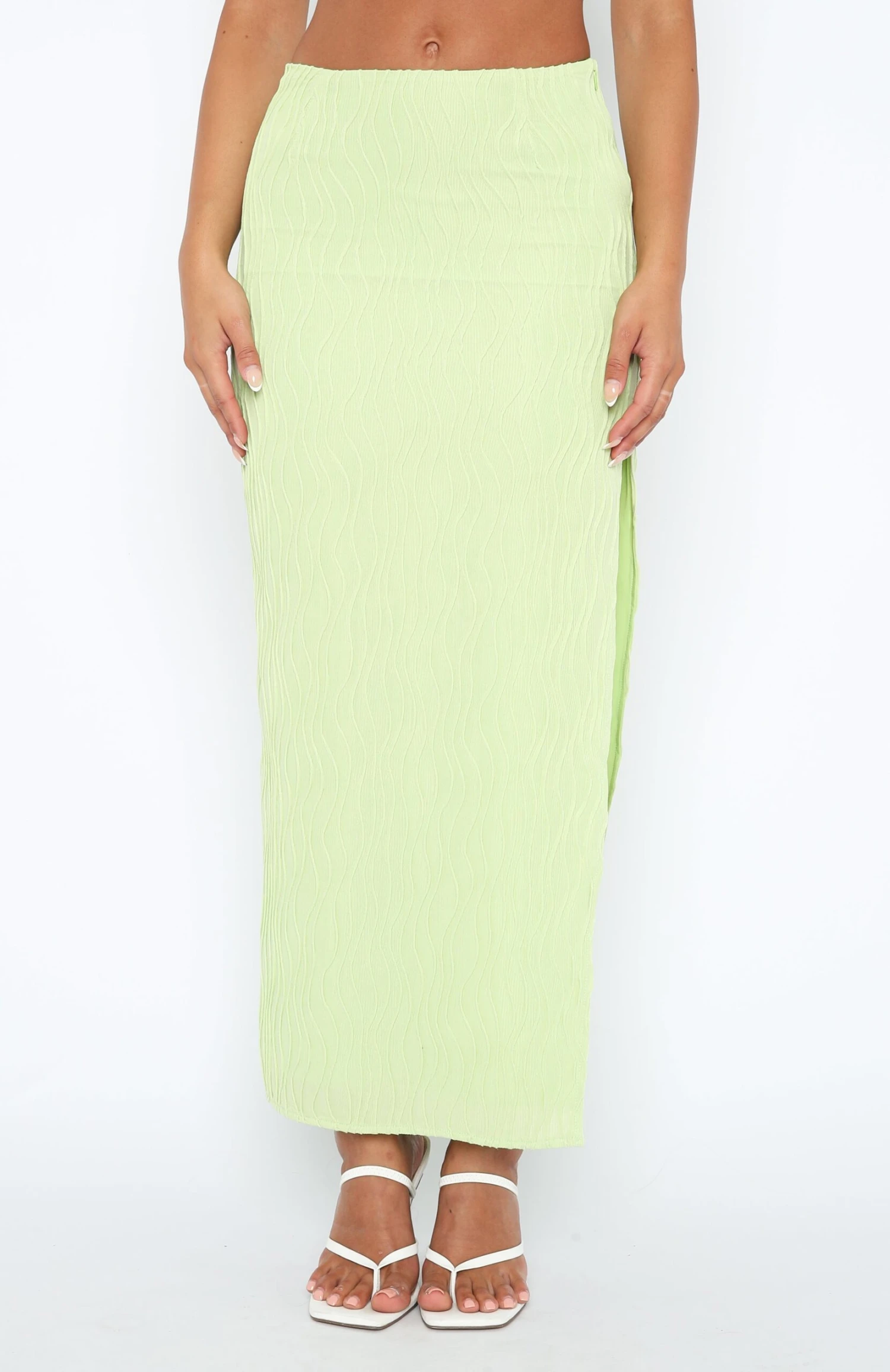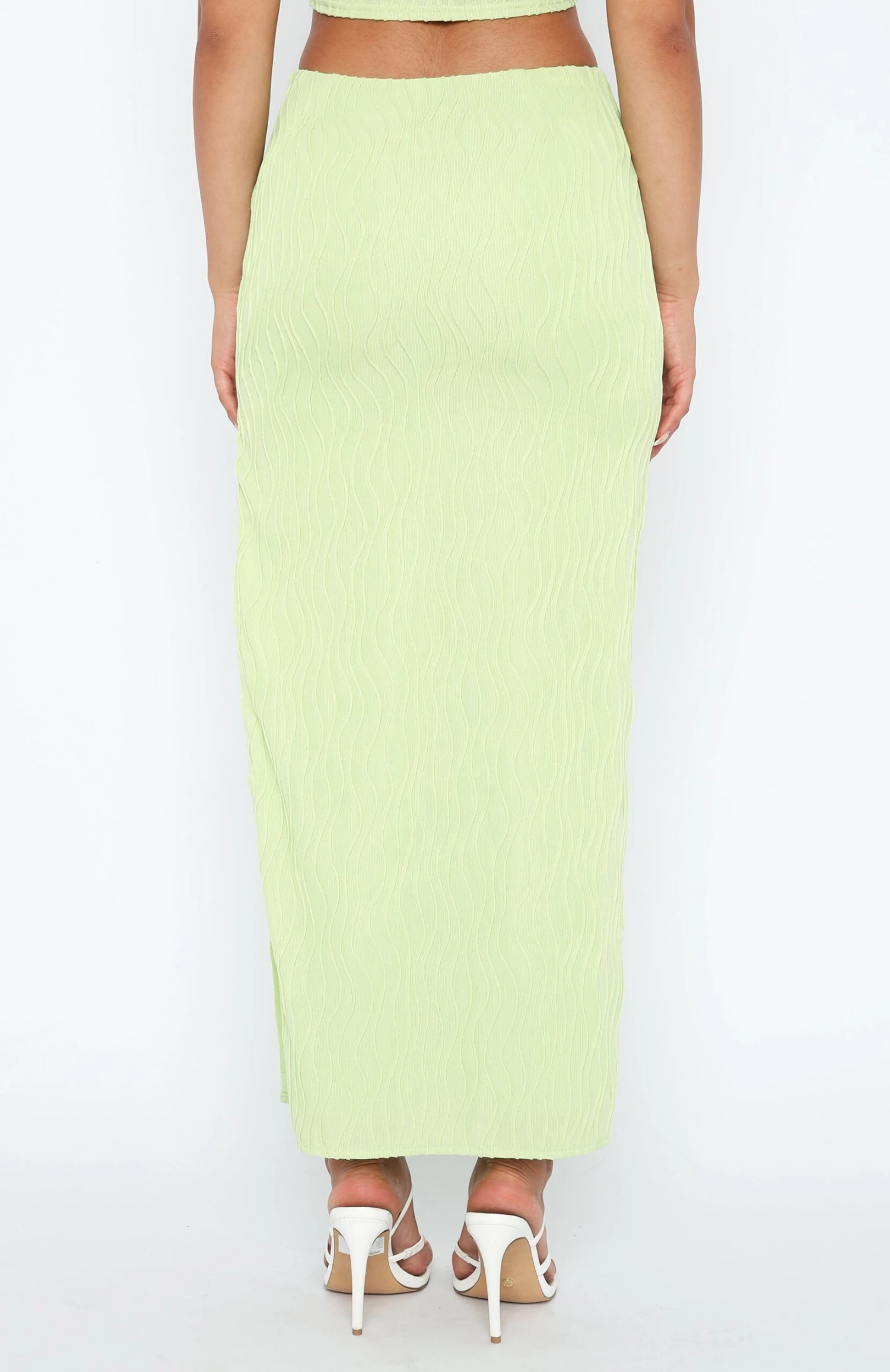 You’ll be feeling your best in the Lasting Legacy Maxi Skirt in Matcha. This maxi skirt is high-waisted and features invisible side zipper, side leg split and textured fabric. Pair with the matching She Dreams Crop and platform slides for a dreamy look!