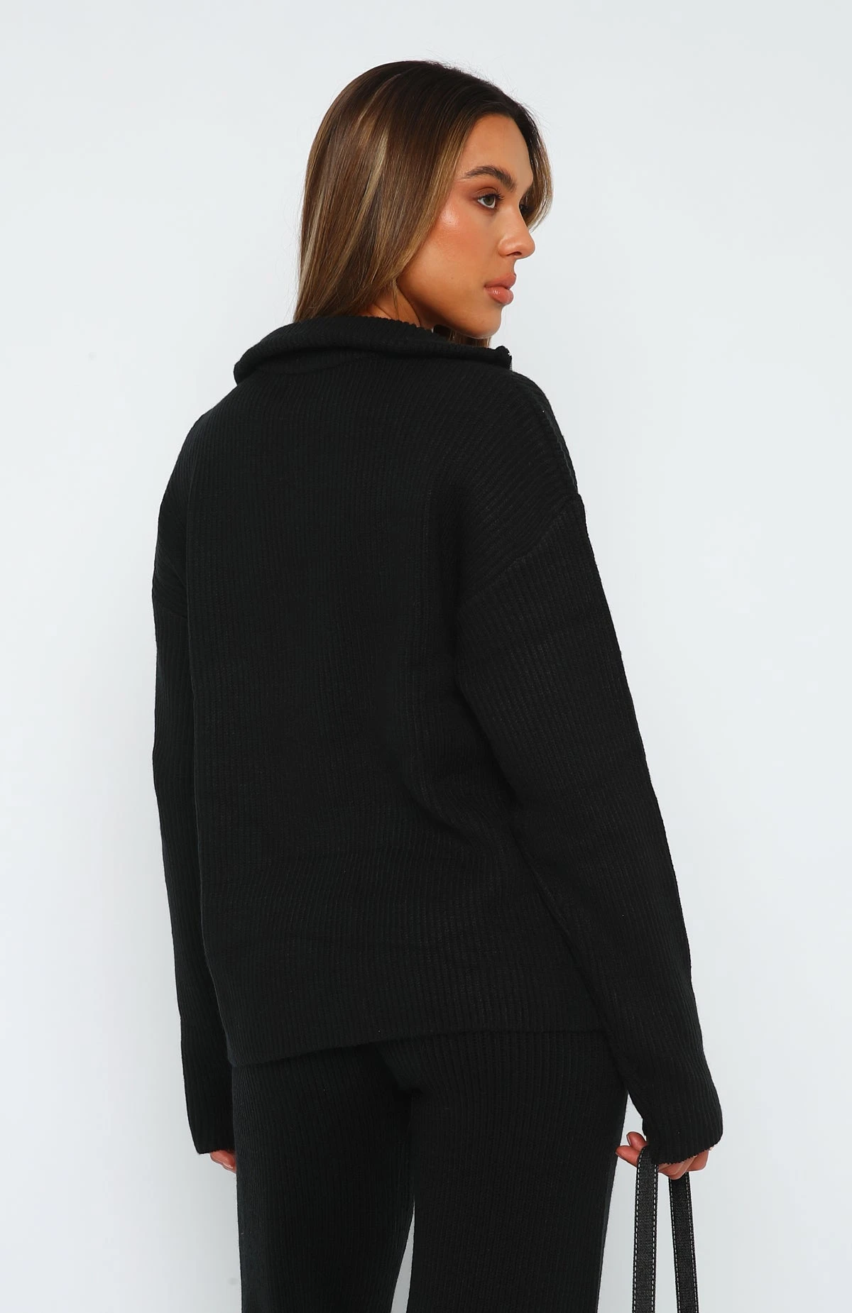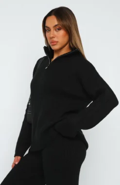 The perfect cool weather knit has arrived. The Let’s Get Cosy Knit Sweater Black features a relaxed fit, zip fastening at neckline and cost, soft fabric. Pair with the Let’s Get Cosy Knit Pants Beige for a chic and cosy look. Now you’re ready to take on those cooler days! Â