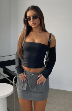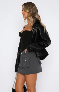 You can never have too many mini skirts with the Let’s Meet Tonight Cargo Mini Skirt Charcoal!