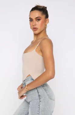 The Living Large Bustier in Beige is chic and structured. Featuring thin, adjustable straps, low neckline, boning in bodice, zipper centre back, curved edge and mesh lining to avoid sheerness. Pair with your favourite pair of White Fox Denim Jeans and clear mules for a look to remember.