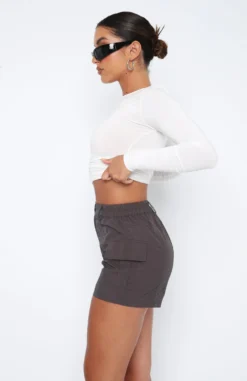 The Living On The Edge Cargo Shorts in Charcoal are a must-have for your wardrobe! Featuring a high, elasticated waistband, button and zip closure, side pockets and belt loops. Pair with a cute crop and sneakers for the perfect weekend fit!