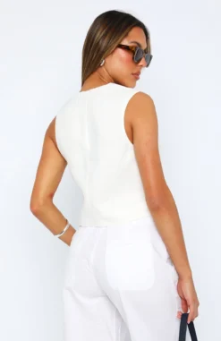 A classic trending piece. The Love The Trend Vest Top White has us dreaming of summer nights, perfect for your upcoming euro summer! Featuring a plunge neckline, front button closure, oversized vest design and light linen fabric. Pair with a white pant and slides for a dreamy look!