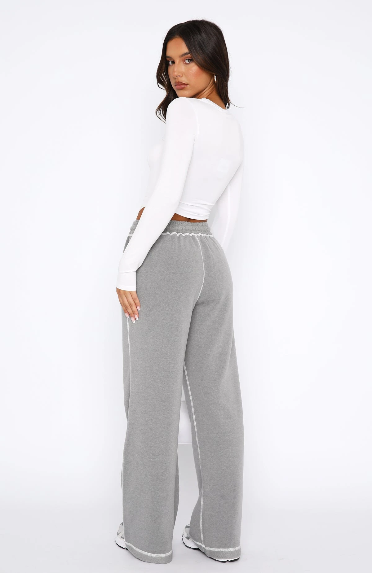 We’re bringing you an everyday pant, designed with long Sunday afternoons in mind. The Monday Mood Low Rise Pants Grey features a thick elasticated waistband, soft textured waist band and lining, white contrast stitching, high rise fit and straight leg design. Pair with a fitted tee and your go-to snugs for lounge worthy fit’!