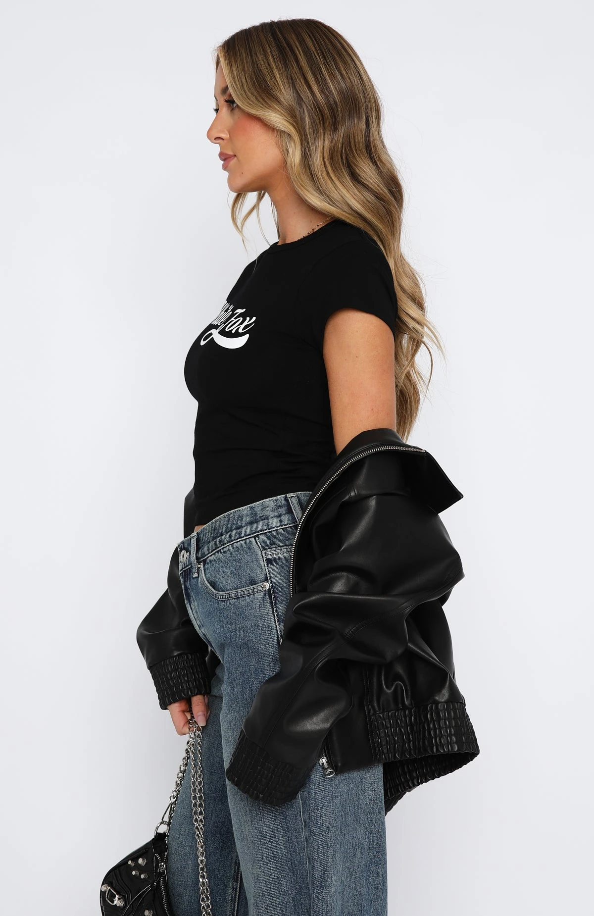 Life is better in loungewear. The Moving Different Baby Tee in Black features short sleeves, printed logo centre front, fitted and soft stretch fabric. Just add the Moving Different Sweatpants and Lounge Shorts.
