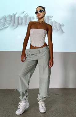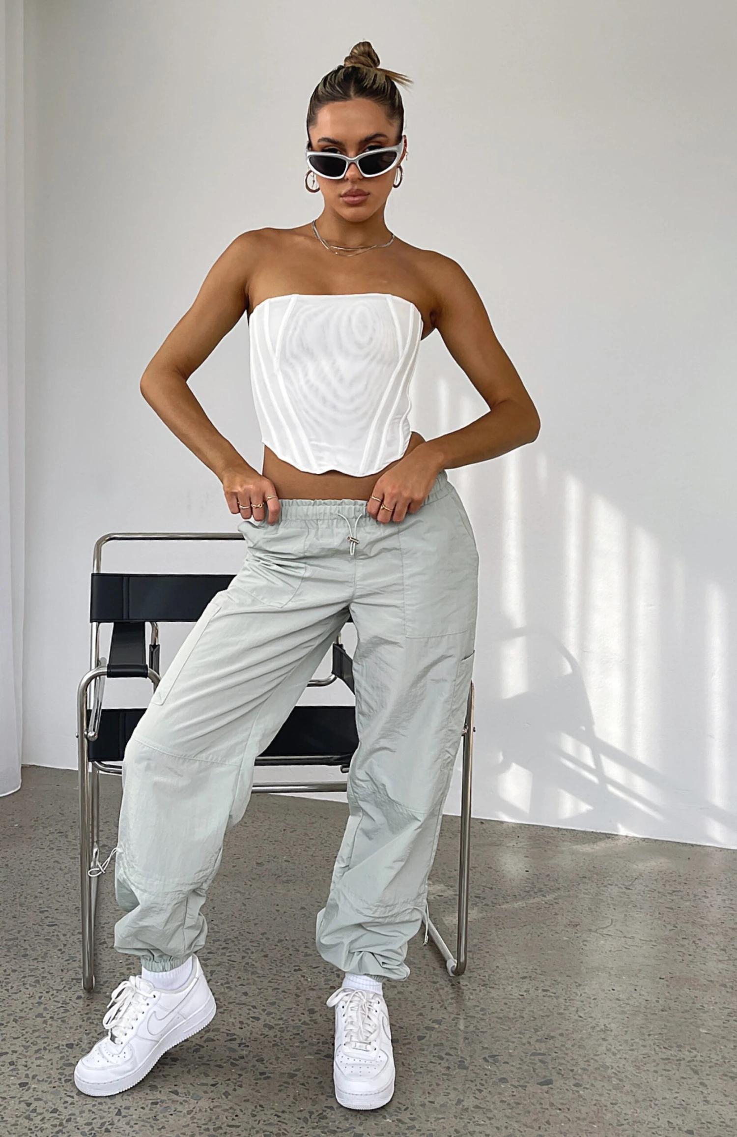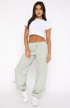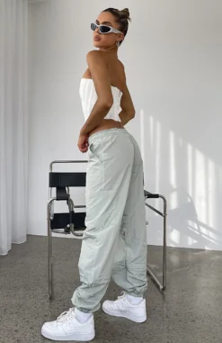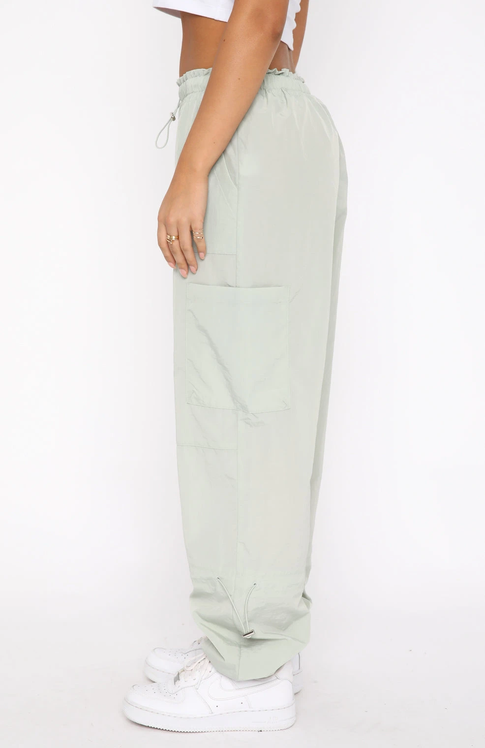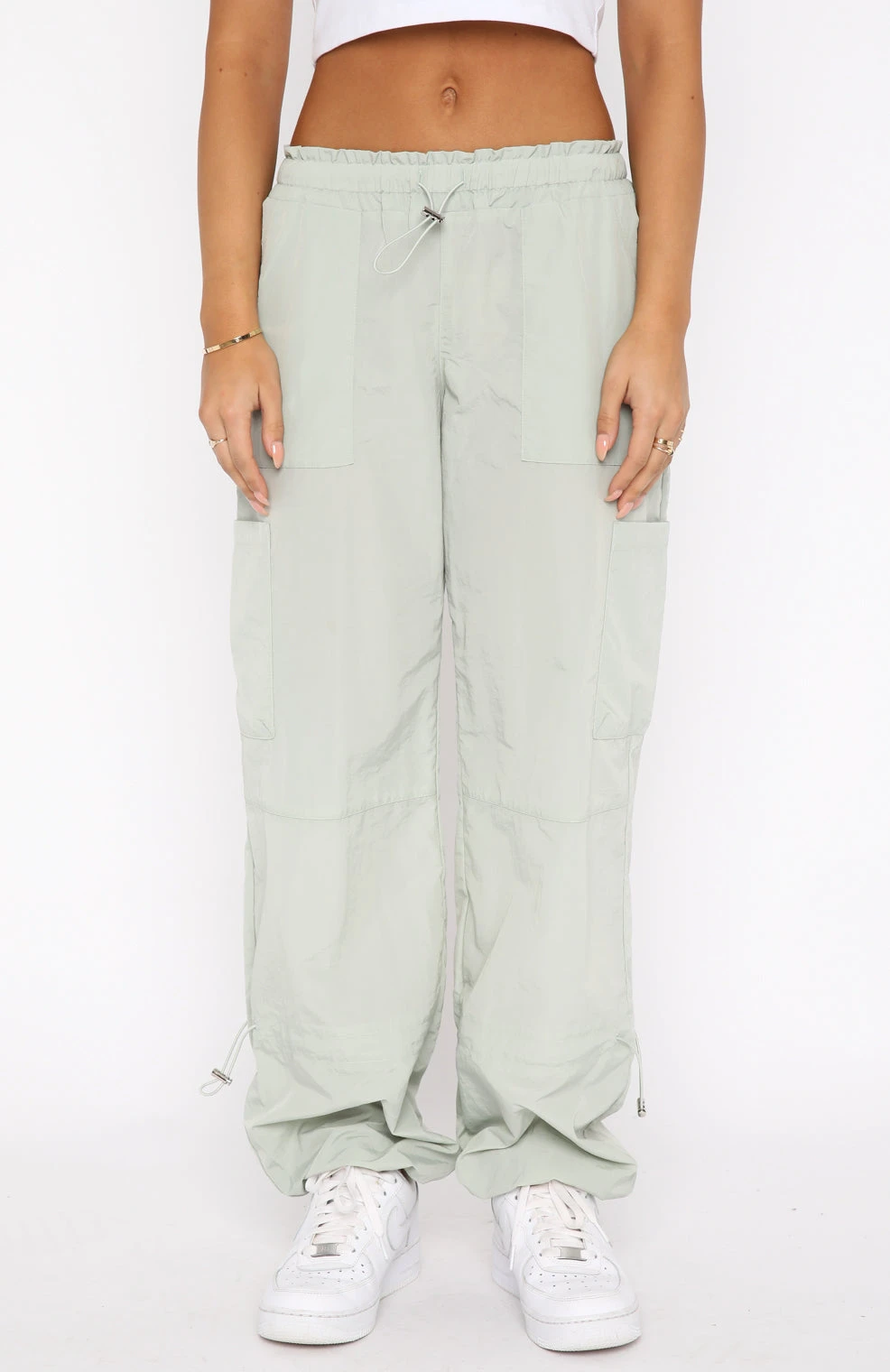Create unforgettable looks in the Never Blend In Cargo Pants in Light Grey. Featuring a parachute pant design and a wide leg fit, drawstring with toggle, elasticated waistband and cuffs, side pocket design on legs and lightweight fabric. Pair these parachute pants with a long sleeve top and sneakers for a super chic look.Â