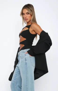 Bring the heat to your weekend wardrobe with the Never Sleep Bodysuit in Black. Featuring thin straps, cut-out design, popper closure and lined, stretch fabric. Pair with your favourite pair of White Fox Denim Jeans and gold accessories for a look that will have all eyes on you!