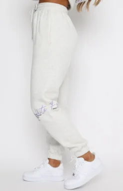 Comfort meets style in our New Story Sweatpants in Grey Marle. These joggers are soft fleece fabric and have an elasticated waistband and ankles, side pockets, matching drawstring, and printed graphics on both legs. Complete the matching tracksuit set with our Just Like That Tee or The New Way Hoodie for a stylish two-piece moment.