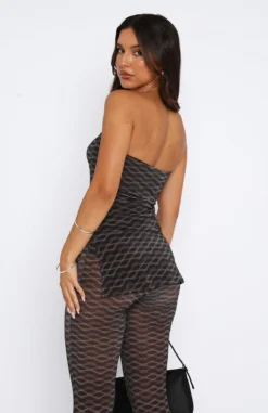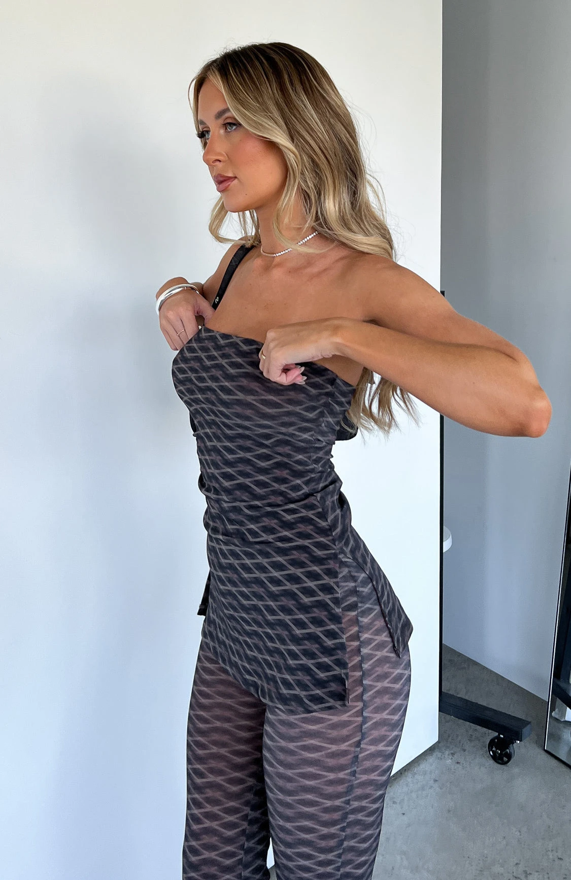 Make a statement in the No Vacancy Top Chocolate Argyle, cut from a mesh fabric in and strapless and fitted silhouette. Features a strapless fit, ruched side design, grip tape, full length with side split design, lined and gorgeous printed fabric. Looks best paired with the matching No Vacancy Pants!