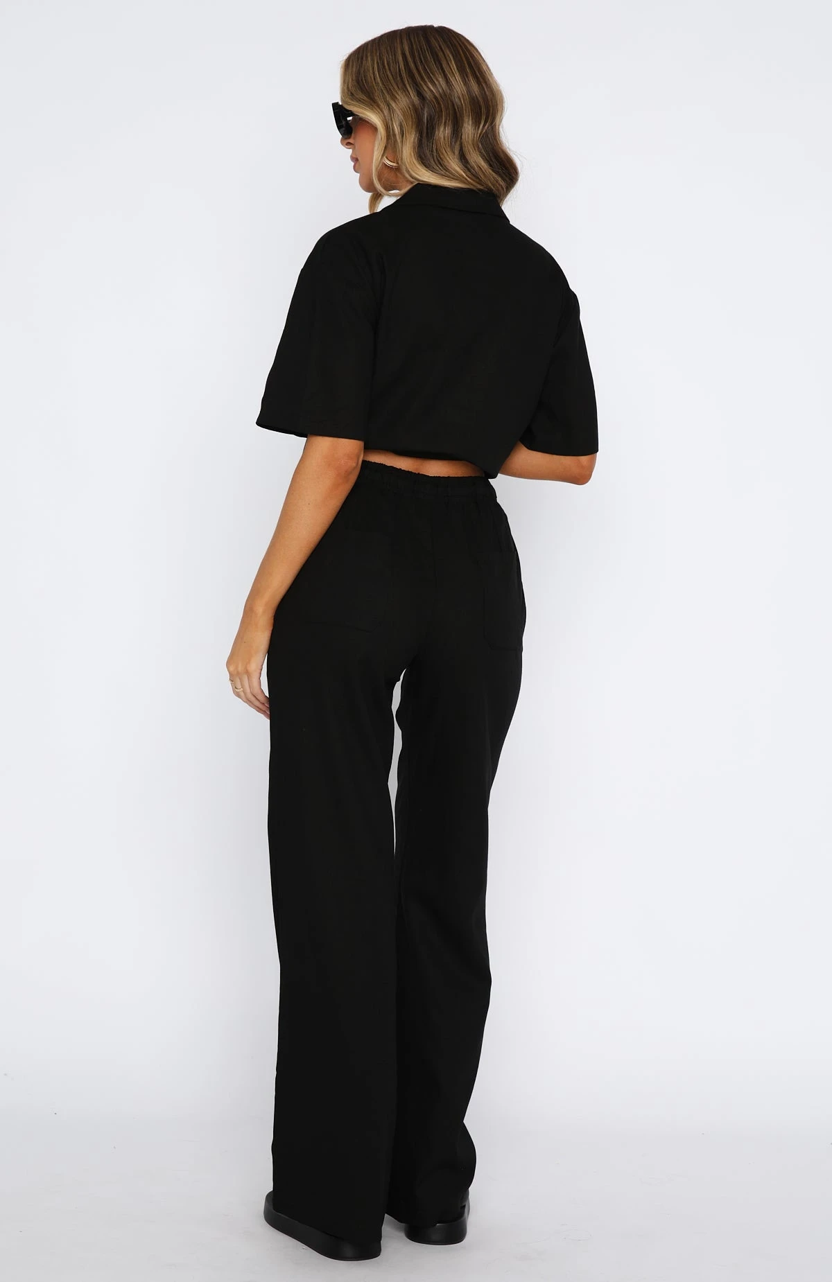 Channel all the summer vibes in the One The Look Out Linen Pants Black. Featuring elasticated waistband with drawstring, side pockets and wide leg fit. Pair with a cute crop and sneakers for a total cool girl fit!