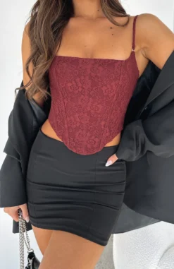 Get ready to earn all the likes with this new season statement piece. The Out Of Luck Bustier Wine features thin, adjustable straps, cropped length, boning in bodice, lace detailing and eyelet back fastening. Pair with one of your favourite pair of White Fox Denim Jeans for the perfect girls night out outfit! Don’t miss out on this must-have and trending piece for an insta-worthy look.