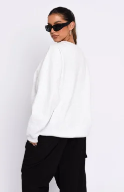 Get cosy in the Part Of History Oversized Sweater in Grey Marle. This jumper is a vintage look with a high scooped neckline, ribbed neckline, hemline and cuffs, fleece lining and White Fox logo on sleeves and front side. Pair with bike shorts and sneakers for the ultimate off-duty look!