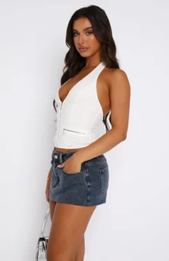 This top is everything we are loving right now babe. The Real Side Top White fits in all the right places! Features a halter neck style, back clasp closure, front centre zip closure, faux front pockets, backless design, plunge neckline and unlined fabric.