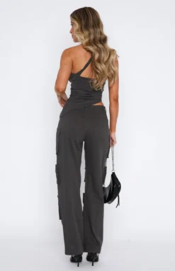 The Run Right Back Cargo Pants Charcoal were made for those last-minute plans. Featuring a cargo design and a wide leg fit, belt loops, button/zip closure and pocket design on legs. Style with a bustier, clear heels, and a mini bag for a ‘fit worthy of all your weekend plans.