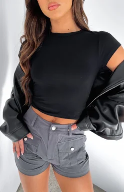 The See You There Cargo Shorts in Black are a wardrobe staple! These shorts are high-waisted, feature button and zip closure, front pockets and belt loops. We love this paired with cute crop and slides for a look we love!