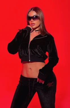 The Y2K trend is calling the and the Shadow Banned Cropped Jacket is here to answer. Featuring a zipper closure centre back, hood, front centre pocket and lined, velour fabric. Pair with the Side Piece Pants and sneakers for a look we love!