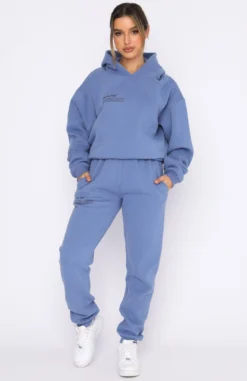 Stay cosy and comfy in the She’s A Baddie Hoodie in Dusk Blue. Featuring long sleeves, elasticated ribbed cuffs & hem, hood, printed logo front side, super soft fleece fabric and vintage feel design. Complete the tracksuit with the Do The Most Sweatpants in Dusk Blue for a comfy but cute look.