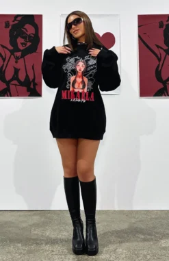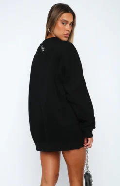 Take the stress out of weekend styling with this Situationship Oversized Sweater Black. This oversized sweater has a high scooped ribbed neckline, cuffs and hem, printed logo centre front and top back and super soft fleece lining for extra comfort. Pair with bike shorts and sneakers for the perfect off-duty look or Mik loves hers styled with knee high boots!
