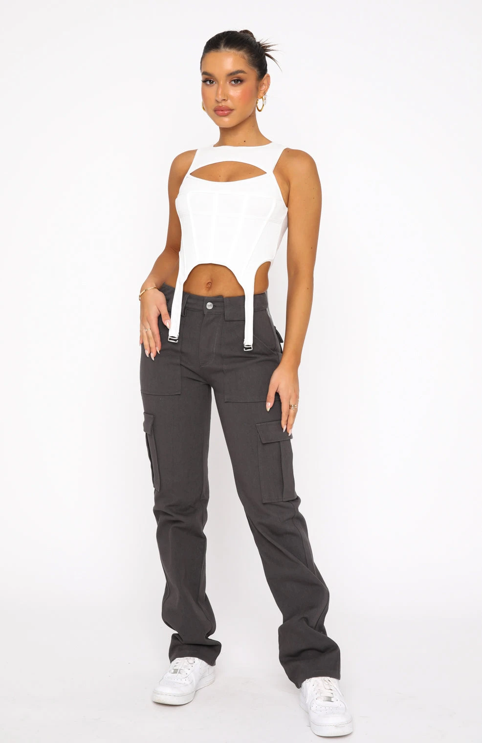 The Someone To You Cargo Pants in Charcoal are this seasons must-have! Featuring a cargo design and a wide leg fit, belt loops, button/zip closure and pocket design on legs. We love this paired with a bustier and sneakers for the ultimate cool girl look!