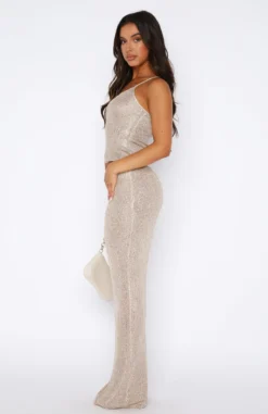 Shine all night long in the Star Shining Sequin Maxi Skirt in Champagne. This knitted maxi skirt features a high, elasticated waistband and sequin embellishment. Complete the look with the matching Love Galore Sequin Top and perspex heels for a look that will have heads turning!